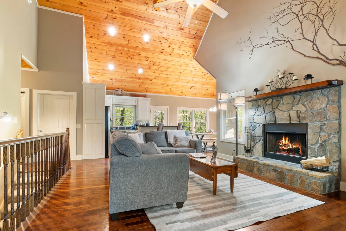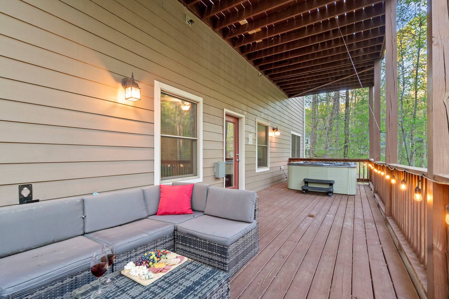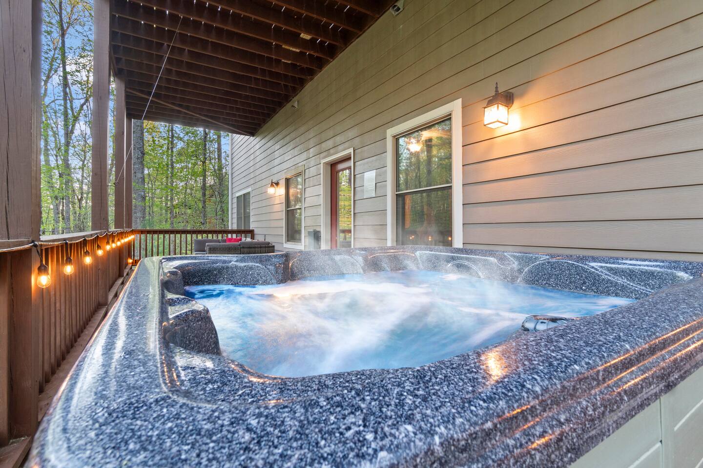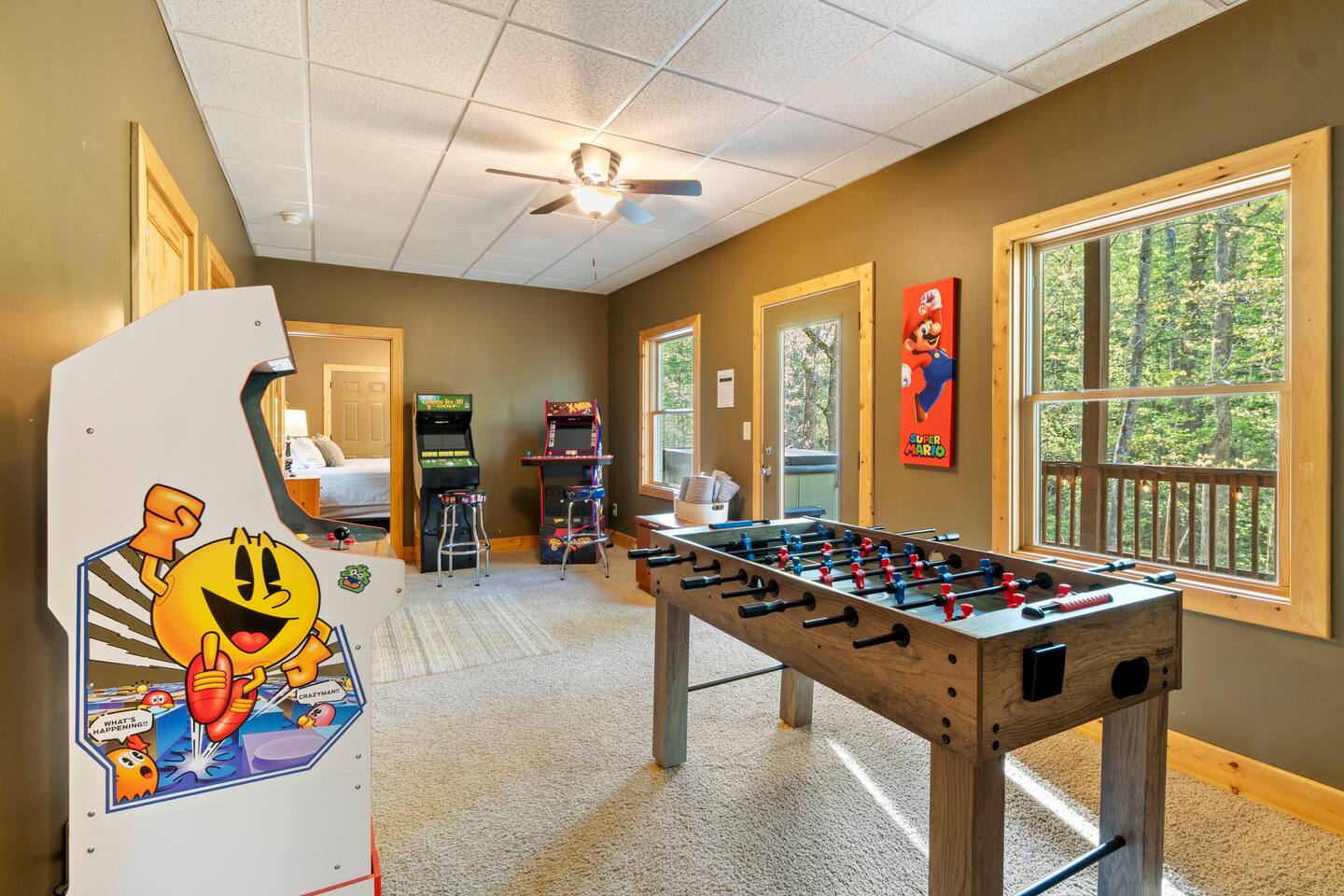 Tree Top Haus is nestled on 1.5 acres w/ 100 yr old Oak Trees. This 2400 sq ft home welcomes up to 12 guests. - Hot Tub - Arcade Room - Foosball Table - Movie Room with a 100" 4K screen - Outdoor Grill - 3 Large Porches - Up to 3 dogs allowed (Please make sure they are added on the reservation) Step inside "Tree Top Haus," where comfort meets style. The interior is thoughtfully designed to accommodate large groups without compromising on individual space. The home offers a range of amenities to ensure a delightful stay for every guest. (Please see the floorplan of the home in "additional" photos.) ✨ KITCHEN + LIVING AREA ✨ 🛋️📺 Enjoy the open kitchen, living, and dining spaces that flow onto a wrap-around deck with peaceful views. The kitchen is fully equipped with all the essentials—plus a Keurig, French press, and drip coffee maker to satisfy every coffee craving! ✨ BEDROOMS + SLEEPING SPACES ✨ 🛏️ Upstairs: King-Sized Bed (1) with Ensuite Bathroom Queen-Sized Bed (1) Full Bath - Shower only Downstairs: King Sized Bed (1) Twin Beds (4) ✨ MOVIE ROOM ✨ 🎬🍿📽️ Relax and enjoy your favorite movies via streaming or a variety of DVD's on a 100-inch screen with cozy seating—a couch, bean bags, or Papasan chairs. A mini-fridge and microwave keep snacks handy, so no need to run up and down stairs! ✨ GAME ROOM ✨ 🎮🕹️🎲 Enjoy arcade classics, board games, and cards, or challenge friends to foosball, giant checkers, tic-tac-toe, and Connect Four. Fun awaits! ✨ PORCHES + OUTDOOR SPACES ✨ 🪵☕🌄 Relax on three inviting porches—perfect for morning coffee or evening wine—while enjoying treetop views and spotting wildlife like squirrels, deer, and maybe even a bear! THINGS TO ENJOY IN THE AREA: Hardman Farm Heritage Trail (9 min walk/ 2 min drive) Georgia Mountain Coaster (30 min walk/ 4 min drive) Cool River Tubing (15 min walk/ 2 min drive) Alpine Mini Golf (18 min walk/ 3 min drive) Vahalla Golf and Spa (27 min walk/ 5 min drive) Pink Pig Southern BBQ (14 min walk/ 2 min drive) Spice 55 Thai and Sushi (14 min walk/ 2 min drive) Hansel and Gretel Candy Kitchen (18 min walk/ 3 min drive) (Please note some of these are open seasonally)