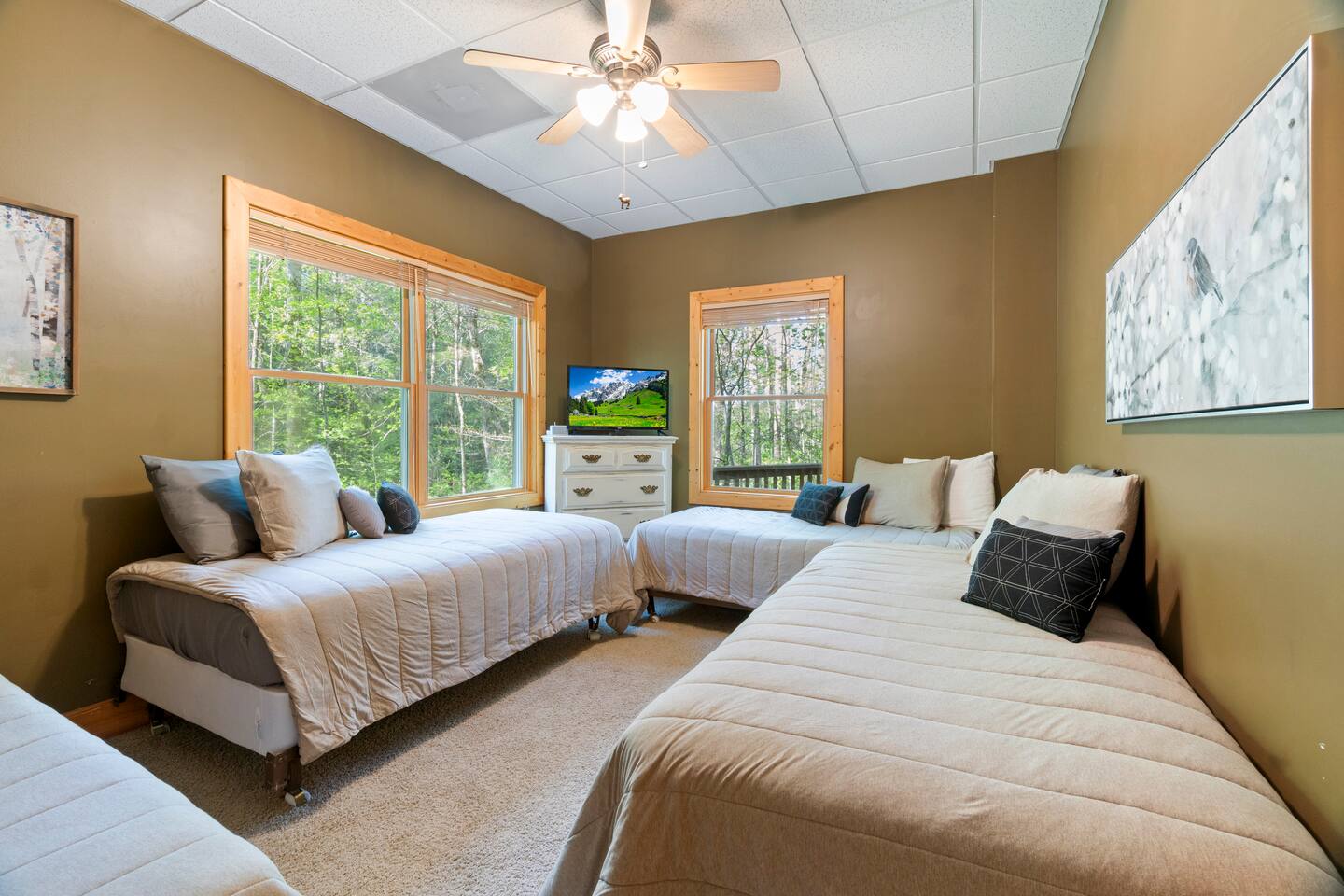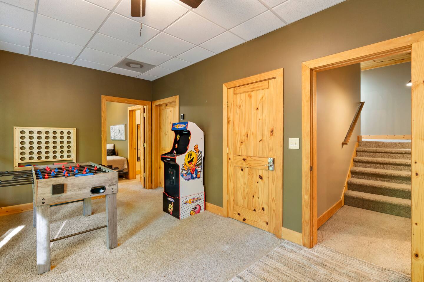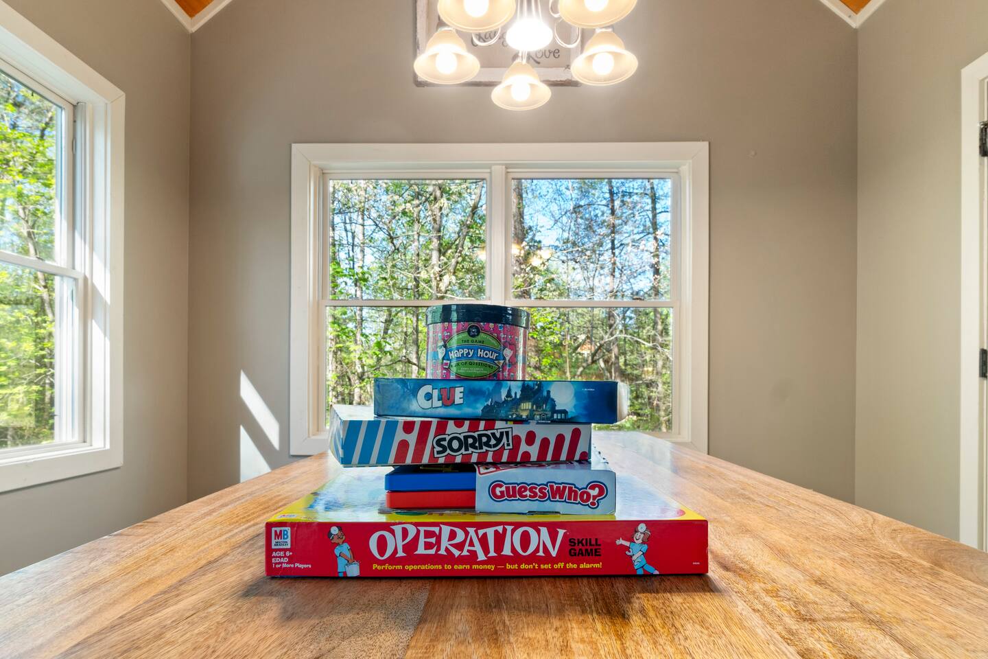 Tree Top Haus is nestled on 1.5 acres w/ 100 yr old Oak Trees. This 2400 sq ft home welcomes up to 12 guests. - Hot Tub - Arcade Room - Foosball Table - Movie Room with a 100" 4K screen - Outdoor Grill - 3 Large Porches - Up to 3 dogs allowed (Please make sure they are added on the reservation) Step inside "Tree Top Haus," where comfort meets style. The interior is thoughtfully designed to accommodate large groups without compromising on individual space. The home offers a range of amenities to ensure a delightful stay for every guest. (Please see the floorplan of the home in "additional" photos.) ✨ KITCHEN + LIVING AREA ✨ 🛋️📺 Enjoy the open kitchen, living, and dining spaces that flow onto a wrap-around deck with peaceful views. The kitchen is fully equipped with all the essentials—plus a Keurig, French press, and drip coffee maker to satisfy every coffee craving! ✨ BEDROOMS + SLEEPING SPACES ✨ 🛏️ Upstairs: King-Sized Bed (1) with Ensuite Bathroom Queen-Sized Bed (1) Full Bath - Shower only Downstairs: King Sized Bed (1) Twin Beds (4) ✨ MOVIE ROOM ✨ 🎬🍿📽️ Relax and enjoy your favorite movies via streaming or a variety of DVD's on a 100-inch screen with cozy seating—a couch, bean bags, or Papasan chairs. A mini-fridge and microwave keep snacks handy, so no need to run up and down stairs! ✨ GAME ROOM ✨ 🎮🕹️🎲 Enjoy arcade classics, board games, and cards, or challenge friends to foosball, giant checkers, tic-tac-toe, and Connect Four. Fun awaits! ✨ PORCHES + OUTDOOR SPACES ✨ 🪵☕🌄 Relax on three inviting porches—perfect for morning coffee or evening wine—while enjoying treetop views and spotting wildlife like squirrels, deer, and maybe even a bear! THINGS TO ENJOY IN THE AREA: Hardman Farm Heritage Trail (9 min walk/ 2 min drive) Georgia Mountain Coaster (30 min walk/ 4 min drive) Cool River Tubing (15 min walk/ 2 min drive) Alpine Mini Golf (18 min walk/ 3 min drive) Vahalla Golf and Spa (27 min walk/ 5 min drive) Pink Pig Southern BBQ (14 min walk/ 2 min drive) Spice 55 Thai and Sushi (14 min walk/ 2 min drive) Hansel and Gretel Candy Kitchen (18 min walk/ 3 min drive) (Please note some of these are open seasonally)