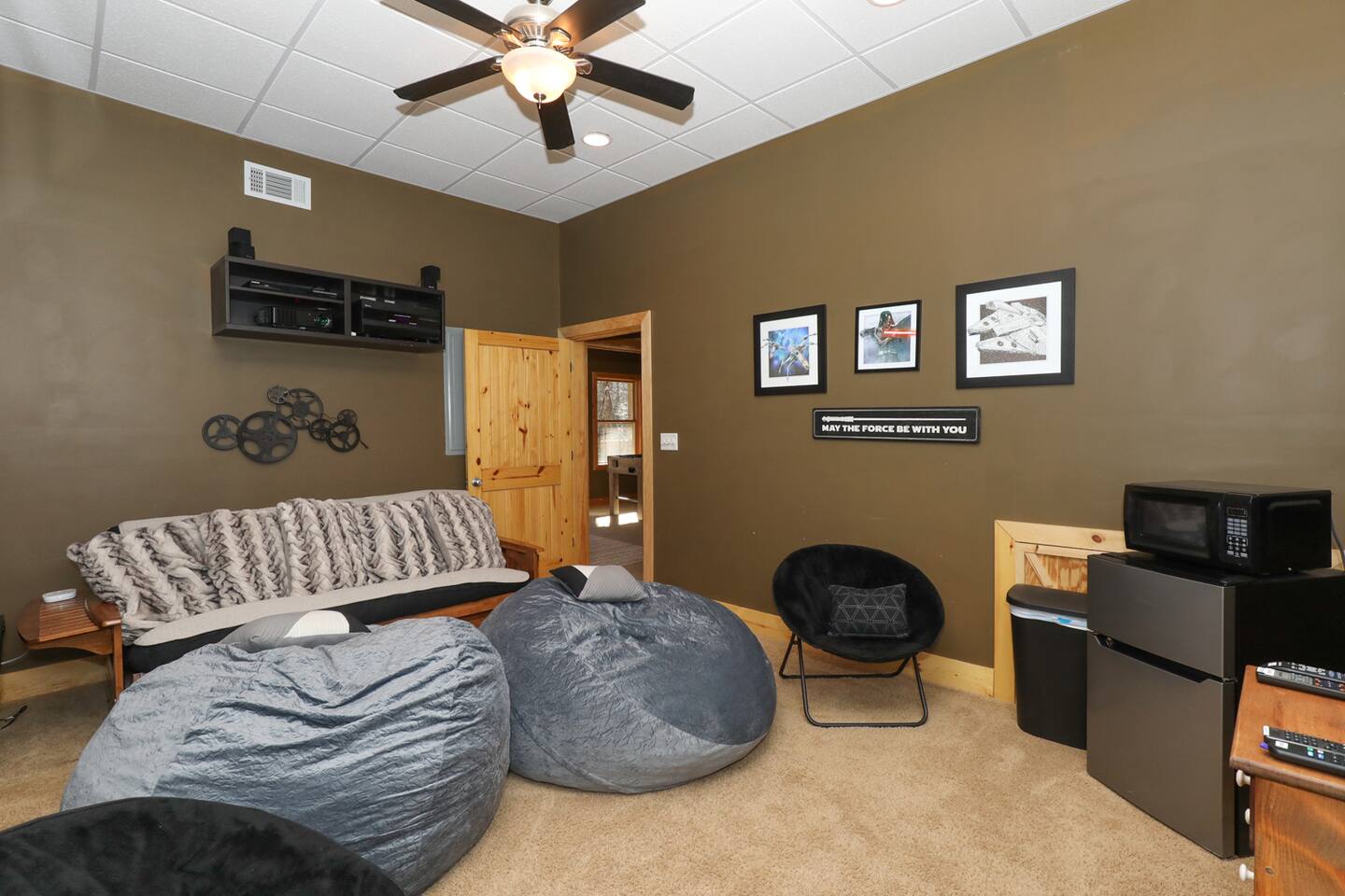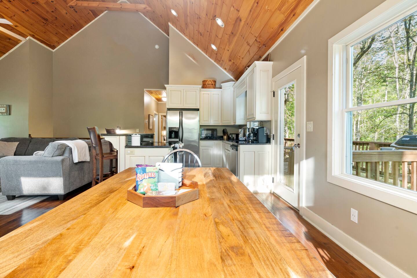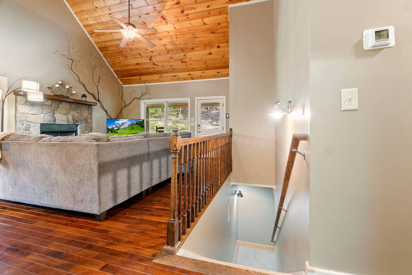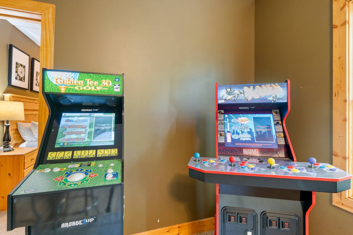 Tree Top Haus is nestled on 1.5 acres w/ 100 yr old Oak Trees. This 2400 sq ft home welcomes up to 12 guests. - Hot Tub - Arcade Room - Foosball Table - Movie Room with a 100" 4K screen - Outdoor Grill - 3 Large Porches - Up to 3 dogs allowed (Please make sure they are added on the reservation) Step inside "Tree Top Haus," where comfort meets style. The interior is thoughtfully designed to accommodate large groups without compromising on individual space. The home offers a range of amenities to ensure a delightful stay for every guest. (Please see the floorplan of the home in "additional" photos.) ✨ KITCHEN + LIVING AREA ✨ 🛋️📺 Enjoy the open kitchen, living, and dining spaces that flow onto a wrap-around deck with peaceful views. The kitchen is fully equipped with all the essentials—plus a Keurig, French press, and drip coffee maker to satisfy every coffee craving! ✨ BEDROOMS + SLEEPING SPACES ✨ 🛏️ Upstairs: King-Sized Bed (1) with Ensuite Bathroom Queen-Sized Bed (1) Full Bath - Shower only Downstairs: King Sized Bed (1) Twin Beds (4) ✨ MOVIE ROOM ✨ 🎬🍿📽️ Relax and enjoy your favorite movies via streaming or a variety of DVD's on a 100-inch screen with cozy seating—a couch, bean bags, or Papasan chairs. A mini-fridge and microwave keep snacks handy, so no need to run up and down stairs! ✨ GAME ROOM ✨ 🎮🕹️🎲 Enjoy arcade classics, board games, and cards, or challenge friends to foosball, giant checkers, tic-tac-toe, and Connect Four. Fun awaits! ✨ PORCHES + OUTDOOR SPACES ✨ 🪵☕🌄 Relax on three inviting porches—perfect for morning coffee or evening wine—while enjoying treetop views and spotting wildlife like squirrels, deer, and maybe even a bear! THINGS TO ENJOY IN THE AREA: Hardman Farm Heritage Trail (9 min walk/ 2 min drive) Georgia Mountain Coaster (30 min walk/ 4 min drive) Cool River Tubing (15 min walk/ 2 min drive) Alpine Mini Golf (18 min walk/ 3 min drive) Vahalla Golf and Spa (27 min walk/ 5 min drive) Pink Pig Southern BBQ (14 min walk/ 2 min drive) Spice 55 Thai and Sushi (14 min walk/ 2 min drive) Hansel and Gretel Candy Kitchen (18 min walk/ 3 min drive) (Please note some of these are open seasonally)