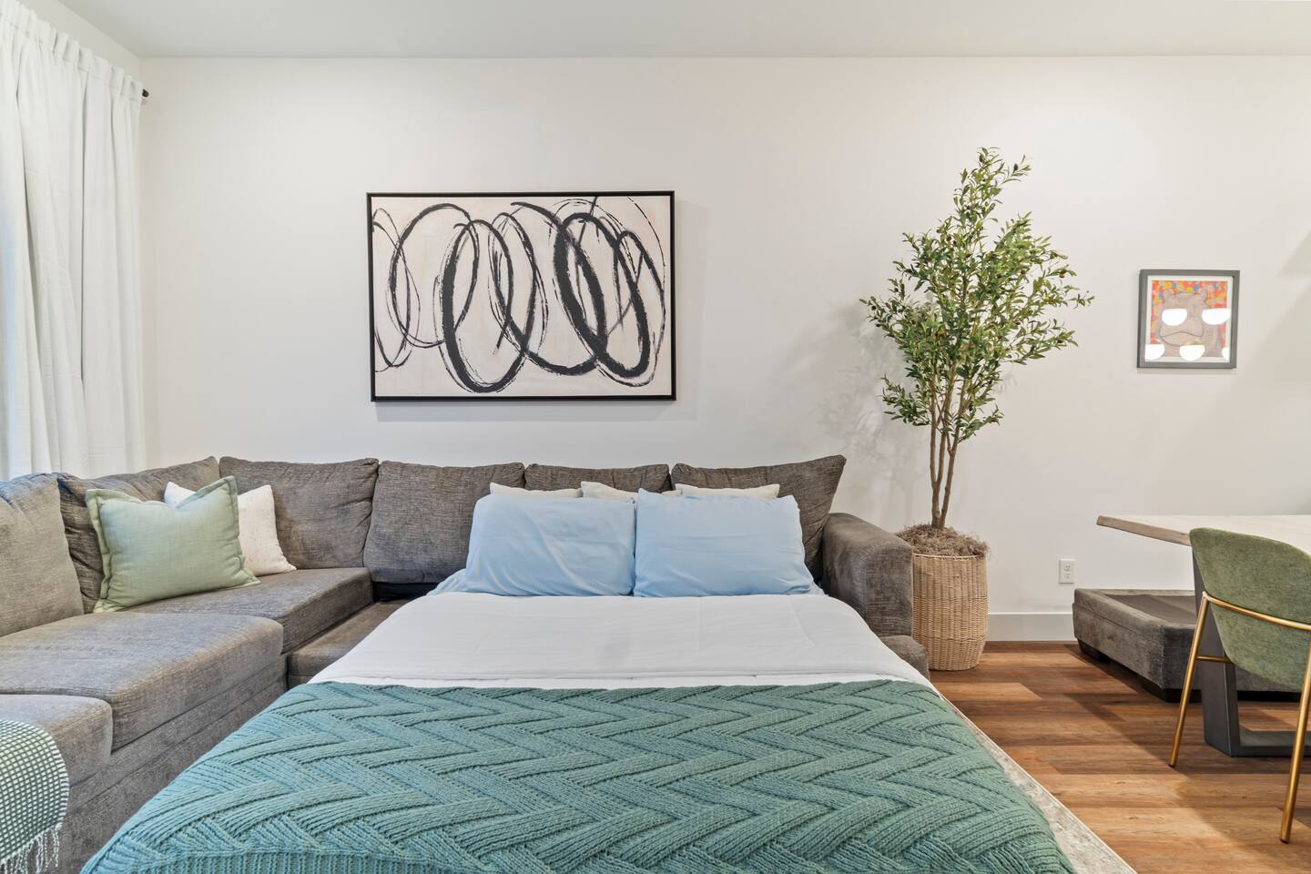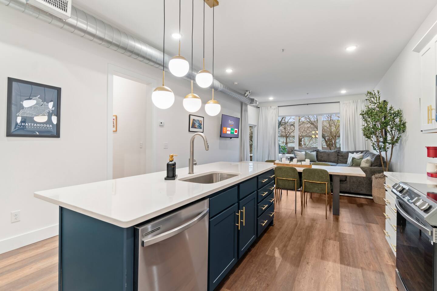 ✧ King bedroom with comfortable, high-quality linens ✧ Full bathroom with a shower/tub combo ✧ Full-sized pull-out sofa bed ✧ Fully equipped kitchen with everything needed for home cooking ✧ In-unit washer and dryer for added convenience ✧ Open floor plan with a bright, welcoming layout ✧ Dog-friendly space allowing one well-behaved dog Whether you’re here for a weekend getaway, work trip, or Scenic City adventure, this condo offers comfort, style, and everything you need for a great stay. Enjoy an open living space with contemporary touches, a plush bedroom for restful nights, and a fully stocked kitchen ideal for cooking in. DISTANCE: ✧ Chattanooga Choo Choo - 1 mile ✧ Warehouse Row - 1.3 miles ✧ Tennessee Aquarium - 2.2 miles ✧ Hunter Museum of Art - 2.5 miles ✧ Incline Railroad - 3.5 miles ✧ Ruby Falls - 5 miles ✧ Rock City - 7 miles ✧ Chickamauga Battlefield - 7.5 miles