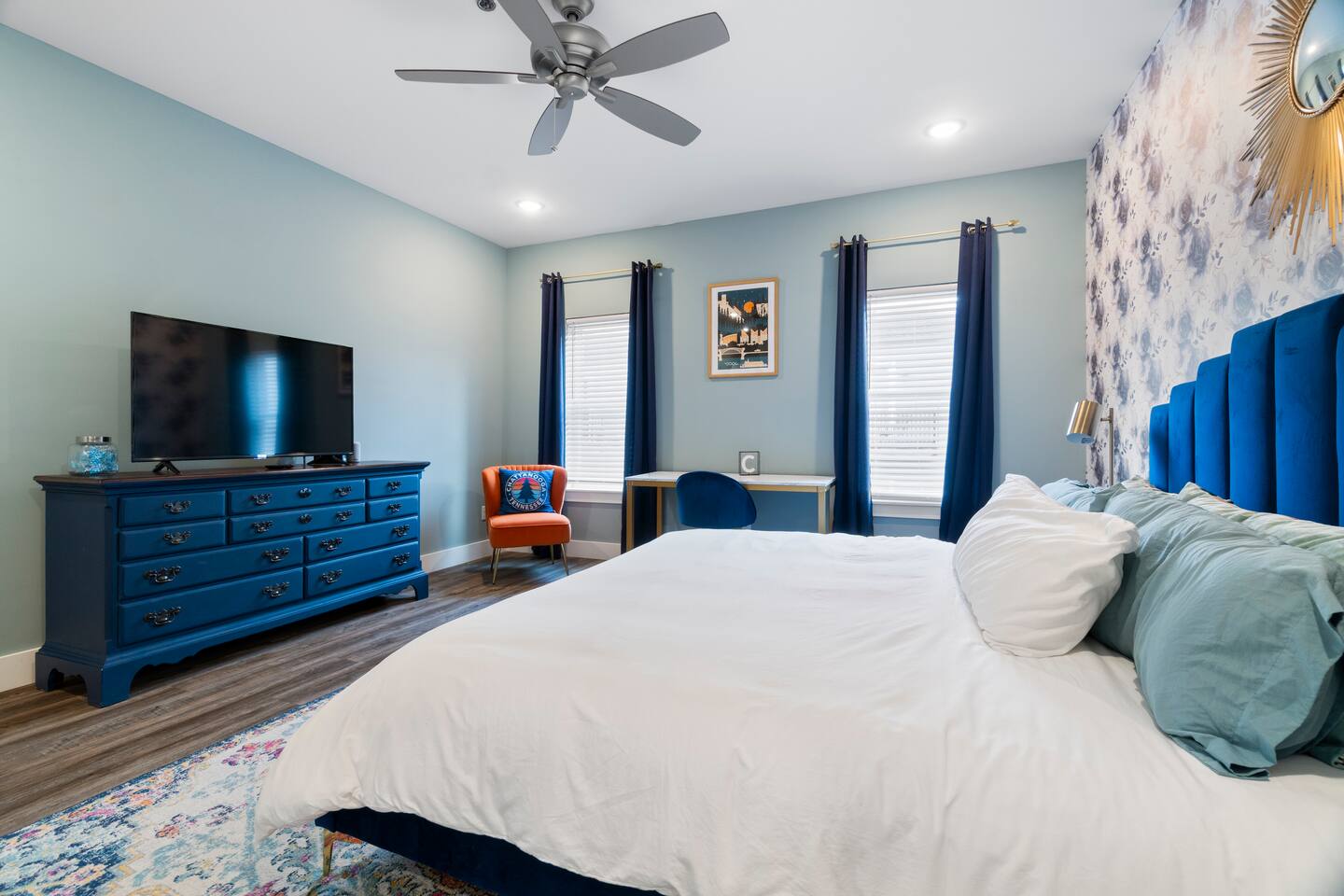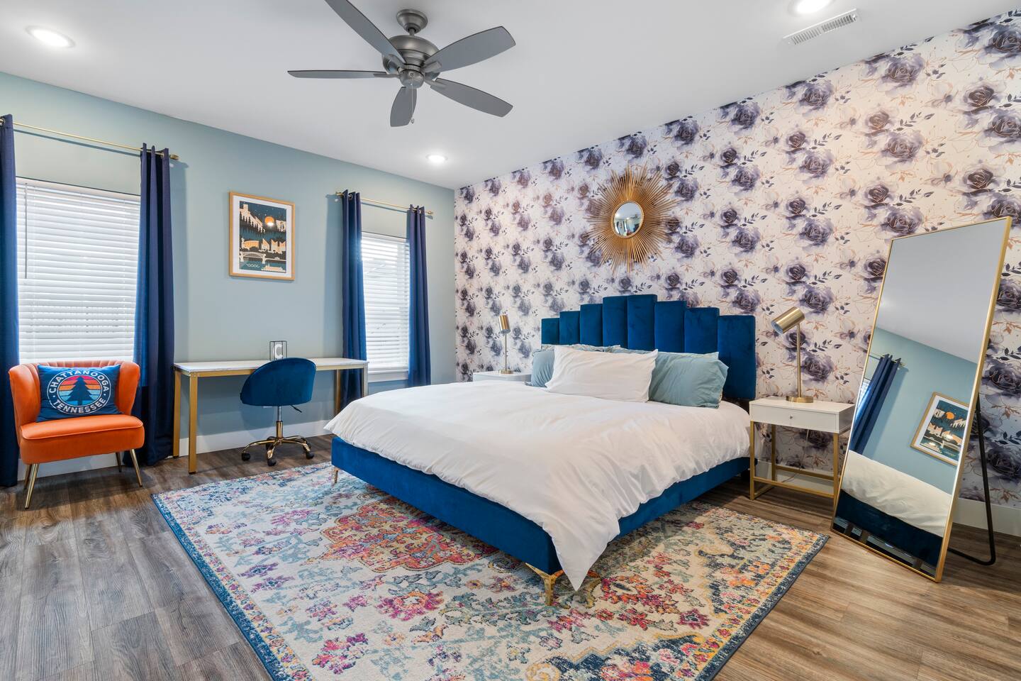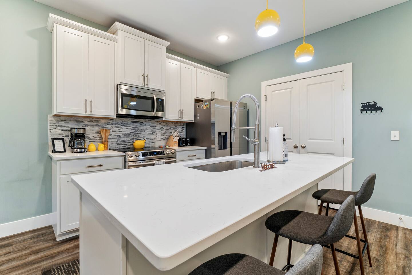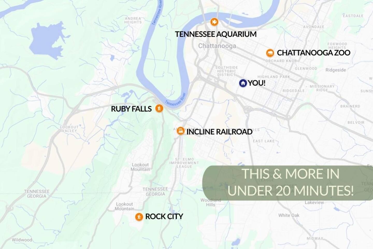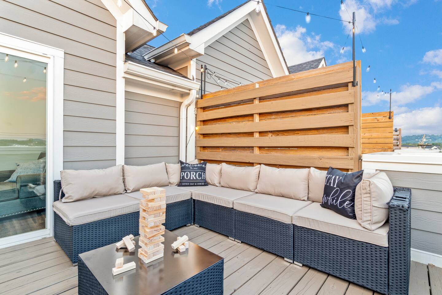 Inside, enjoy a cozy retreat with everything you need for a stress-free stay. 🏠 Home Layout ENTRANCE LEVEL * Queen bed with ensuite bathroom * Laundry area * 1 Vehicle garage access for easy parking SECOND LEVEL * Fully equipped kitchen with modern appliances * Patio off the kitchen, great for morning coffee * Spacious living room with plenty of seating for the whole group THIRD LEVEL * Main suite with king bed, ensuite bathroom, and dedicated workspace * Queen bedroom with access to a shared full hallway bathroom FOURTH LEVEL * Queen bedroom * Loft area leading to a stunning rooftop patio with dining table, lounge seating, and panoramic views—ideal for evening cocktails or stargazing ROOFTOP PATIO * w/ comfy couches, dining table, and fun games! Take in the best of both worlds - the hum of the industrial Southside — while gazing out toward the calm majesty of Lookout Mountain in the distance ☀️ Outside, experience a neighborhood where Southside’s vibrancy, Chattanooga’s history, and the energy of local businesses all come together. 🚲 Short drive to the Tennessee Aquarium, Children’s Discovery Museum & Riverfront 🎨 Colorful murals, art, and a lively industrial backdrop Oddstory Bewing - Next to townhouse complex Scoop Around Ice Cream - 6 min walk Shady's Corner - 7 min walk Velo's Coffee - 2 min drive Niedlov's Bakery - 3 min drive Chattanooga Choo Choo - 5 min Whether it’s a weekend getaway or a longer stay, this Southside spot is the perfect home base for your family & friends.