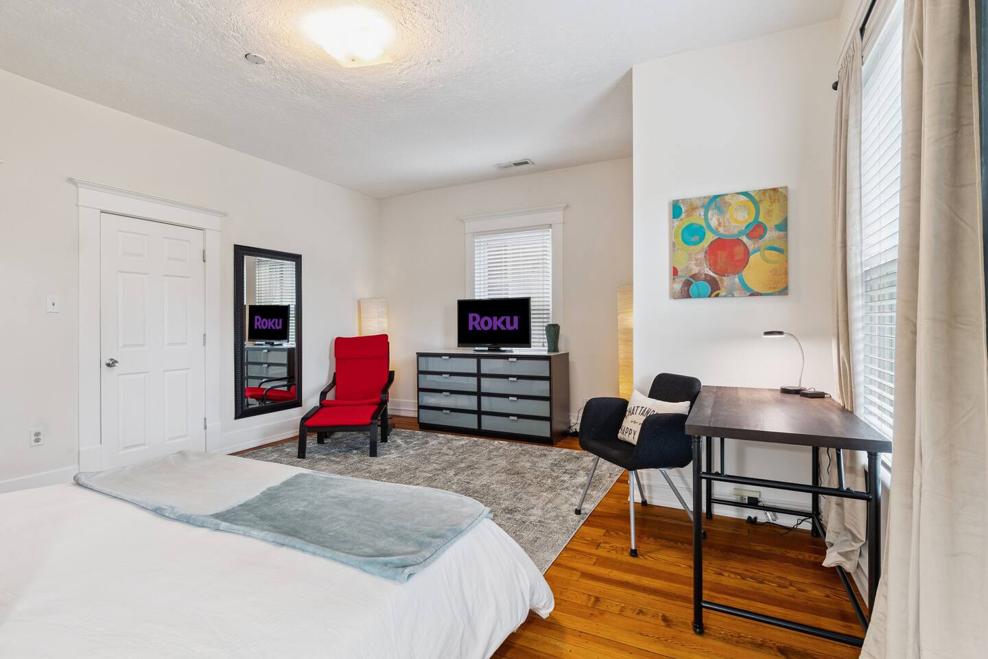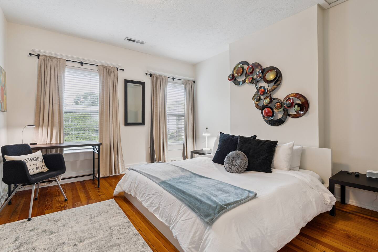 Elegant Historic Home in the Heart of Chattanooga’s Southside ABOUT THE PLACE: FIRST FLOOR/ MAIN LEVEL - *Master Bedroom: King-sized bed with an ensuite bathroom *Additional Bedroom: 2 twin-sized beds with a vanity for getting ready *Additional Bedroom: King-sized bed with desk for getting work done *Bathrooms: 2 full - each with stand-up showers stocked with fresh towels and boutique-style toiletries *Kitchen: Equipped with oven, stove, microwave, pots, pans, cooking utensils, toaster, blender, and more (No dishwasher) *Living Room: A flat screen ROKU TV, local magazines, and board games *Dining Room: Seating for 6 is perfect for family meals, game nights, or remote work SECOND LEVEL - *Main Bedroom: King-sized bed & work space with desk and chair *Additional Bedroom: 2 twin-sized beds with a vanity for getting ready *Additional Bedroom: Queen-sized bed *First Bathroom - Shared with stand-up showers stocked with fresh towels and boutique-style toiletries *Second Bathroom - Shared with shower/ tub combo stocked with fresh towels and boutique-style toiletries *Kitchen: Equipped with oven, stove, microwave, pots, pans, cooking utensils, toaster, and more (No dishwasher) *Living Room: A flat screen ROKU TV, local magazines, and board games *Dining Room: Seating for 6 is perfect for family meals, game nights, or remote work WALKABLE HIGHLIGHTS: Located in Chattanooga’s vibrant Southside, this home puts you steps from local gems—bakeries, cafés, bars, shops, music venues, and parks. Whether you're brunching or exploring, charm and culture are right outside your door. And these are just a few favorites located steps from your front door. Coffee, Dining & Drinks -Niedlov’s – Artisan breads & pastries (5 min walk) -The Local Juicery – Fresh juices & healthy bites (7 min walk) -Honey Seed – Wood-fired pizza & all-day brunch (8 min walk) -Velo Coffee – Small-batch roaster & café (10 min walk) -Main Street Meats – Butcher shop & seasonal plates (5 min walk) -STIR – Craft cocktails & refined fare (6 min walk) -Common House – 21+ social club with coffee, cocktails & coworking (1 min walk) Culture & Entertainment -Chattanooga Choo Choo – Dining, music & events in a historic terminal (6 min walk) Parks & Green Spaces -Pocket Park – Playground with slides & room to unwind (1 min walk) When you’re ready to explore beyond the neighborhood, you’re just minutes from Chattanooga’s top attractions—like the TN Aquarium, Riverwalk, Ruby Falls, Rock City, Lookout Mountain, and the Chattanooga Zoo. Whether you’re into scenic views, family fun, or downtown’s vibrant arts and entertainment, you’re perfectly positioned to enjoy it all. COMMON HOUSE AND POOL ACCESS: - A 1 minute walk offsite 21+ social club access to all their amenities: Sparkling outdoor pool, fully equipped exercise room, Steam room, Pool table, Co-working space, Social events, and more! - 1 Day pass per 21+ guest with 3 night minimum stay - Discounted day passes available for stays under 4 nights